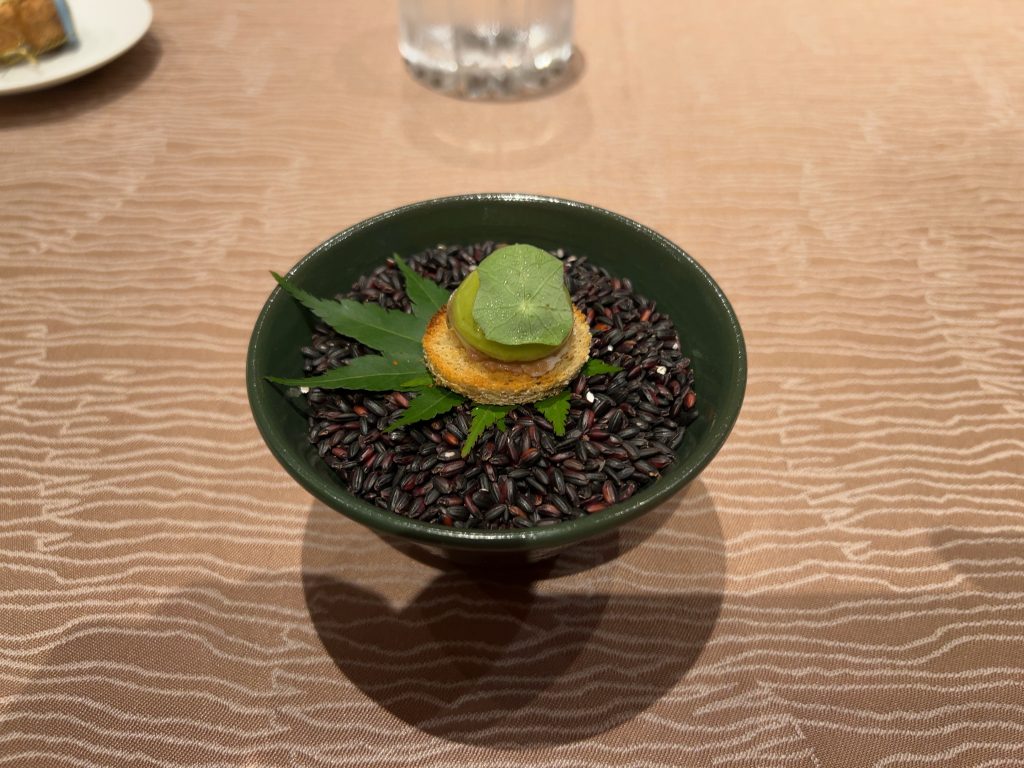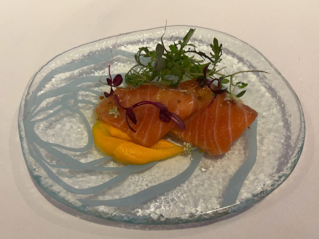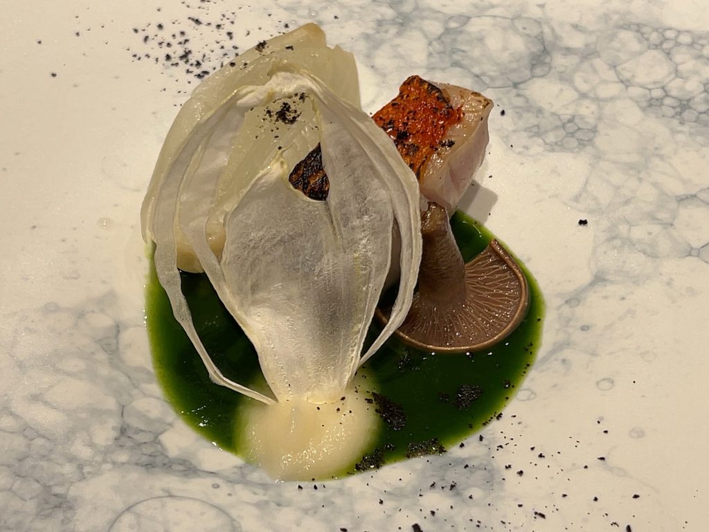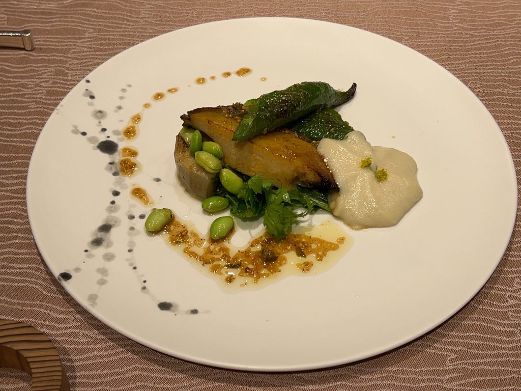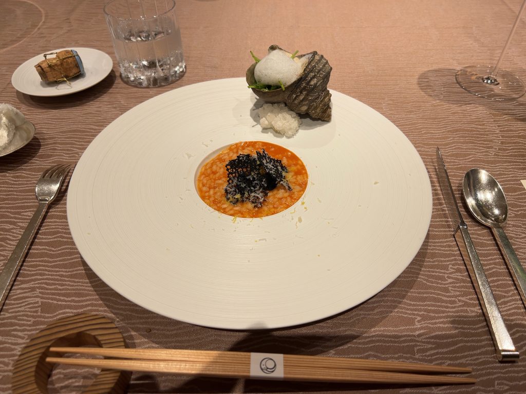 夕食は最上階のレストランでフランス料理を頂きました。プランにトラディションというコースが含まれていて、伊勢海老の料理がメニューに入っています。