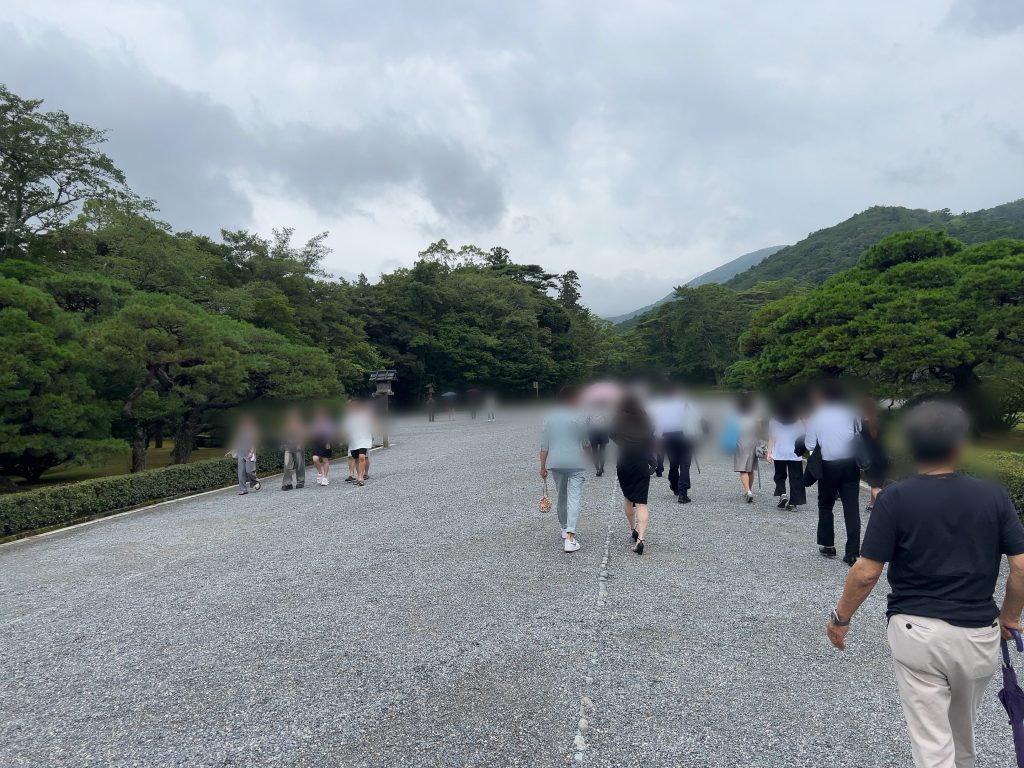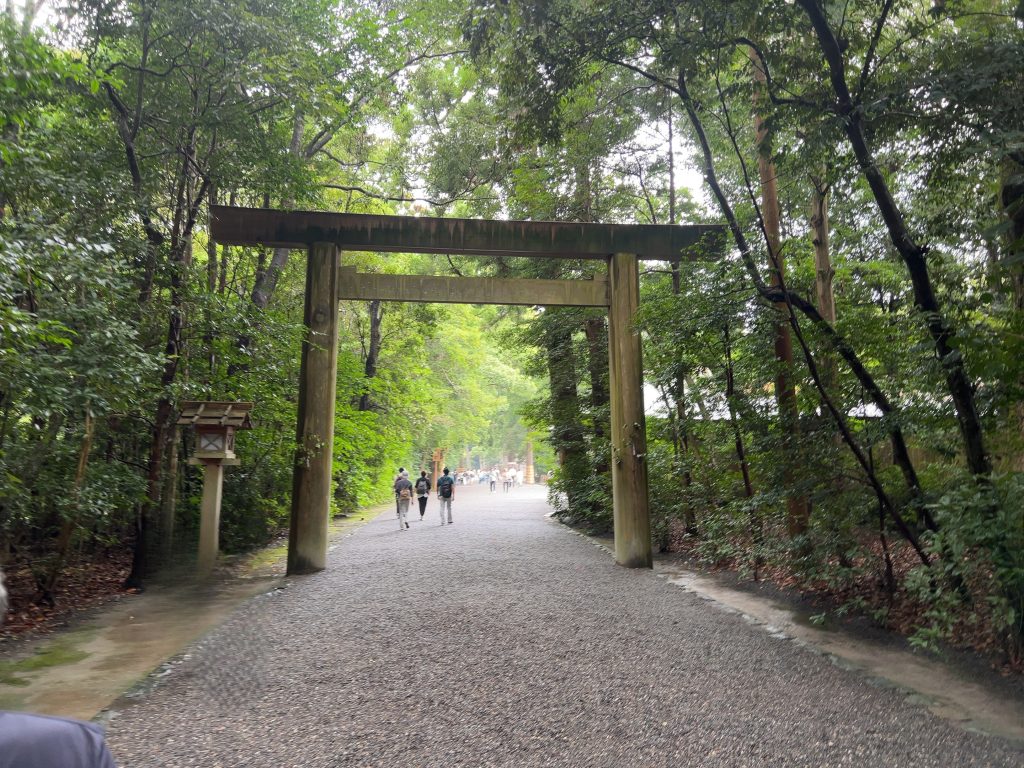山道をトコトコ行くこと1時間弱で到着。不思議なことに雨も止みました。お伊勢参りのスタートです。