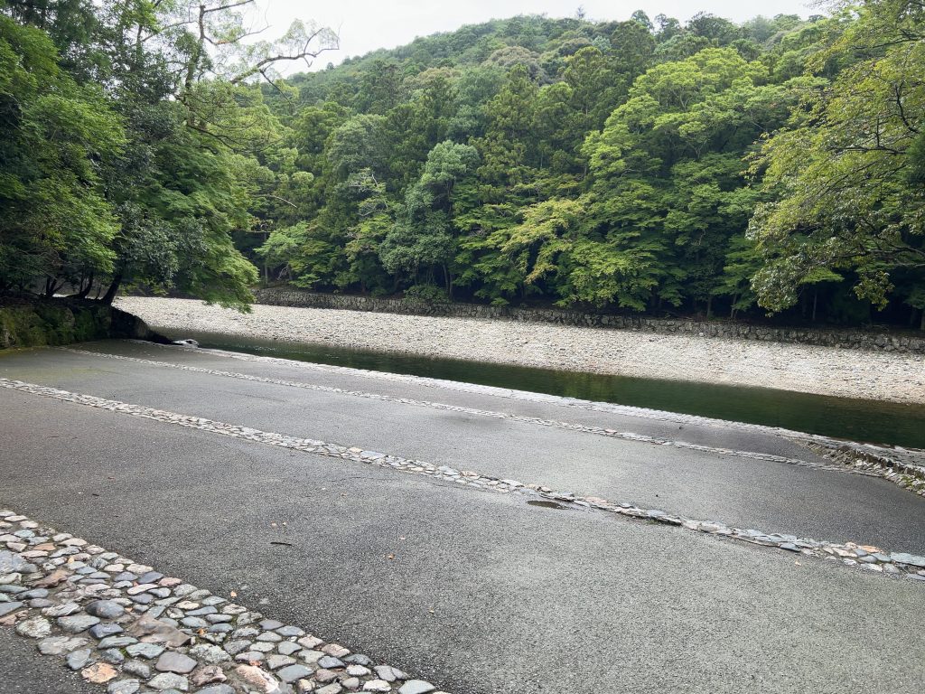 ドライバーさんがガイドもしてくれました。五十鈴川を渡りいよいよ境内に入りました。