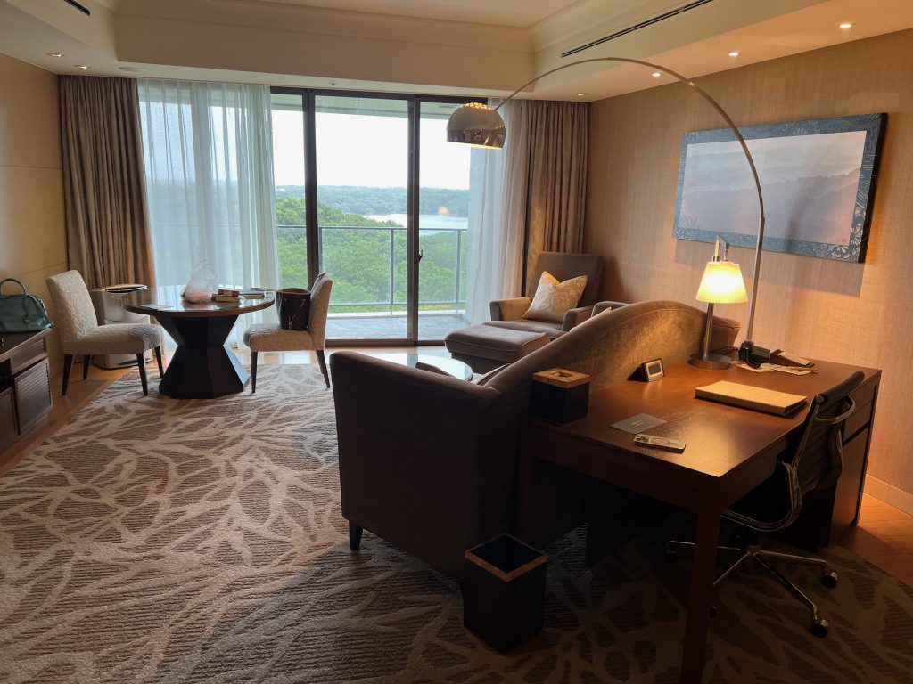 ロビーでチェックインを終えお部屋へ。予約した部屋は「スーペリアスイート キング(禁煙)(sk)」です。リビング、ベッドルーム、バスルーム、バルコニーからなる約100平米のスイート、になります。