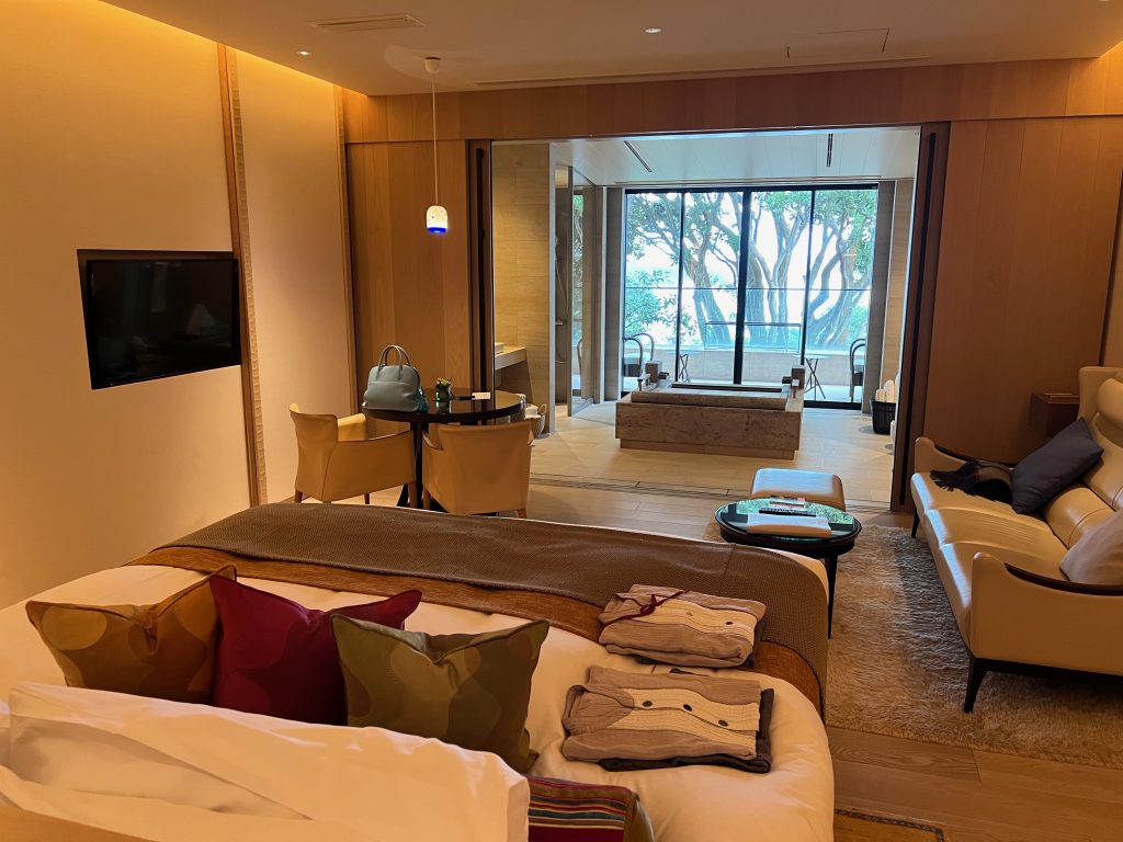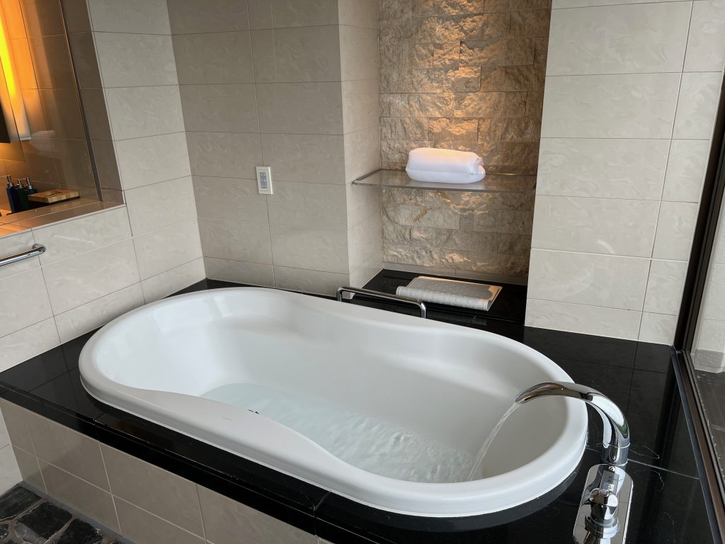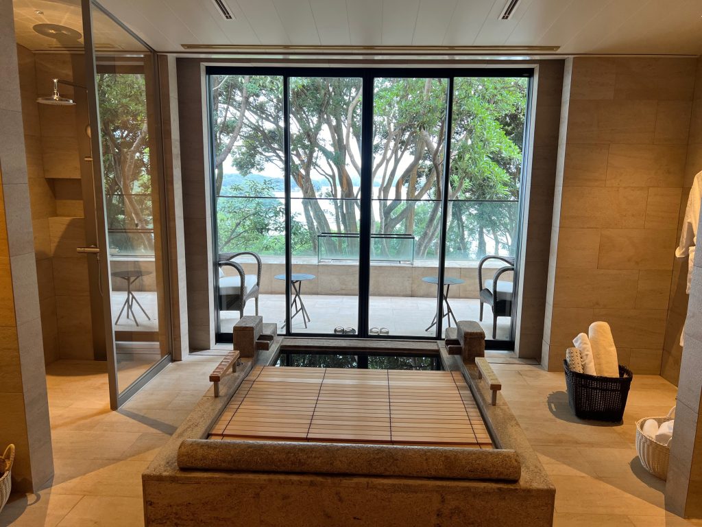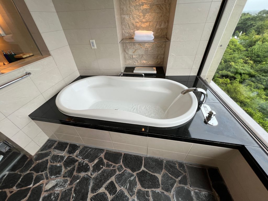 広くてとてもおしゃれなお部屋で1泊しかしないのはとても残念でした。ただのんびり過ごすのももったいないので素晴らしい景色を眺めながらお風呂に入りました。