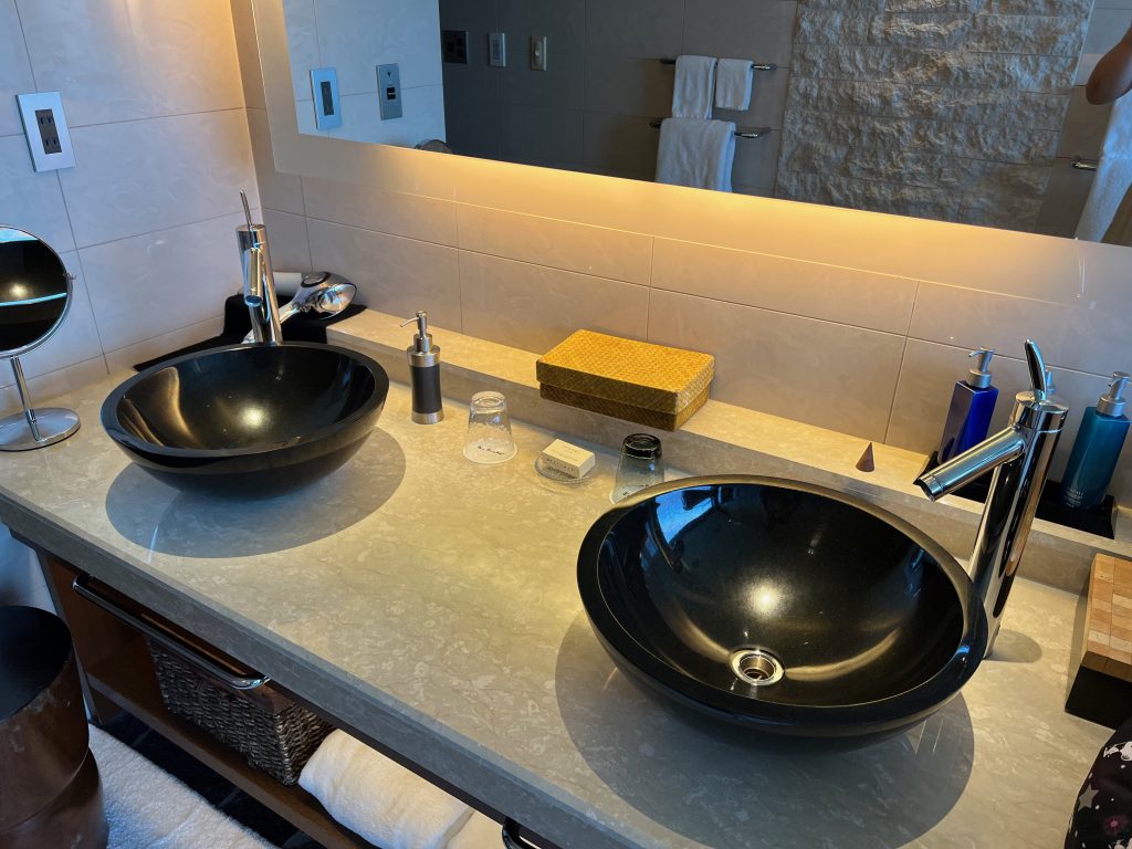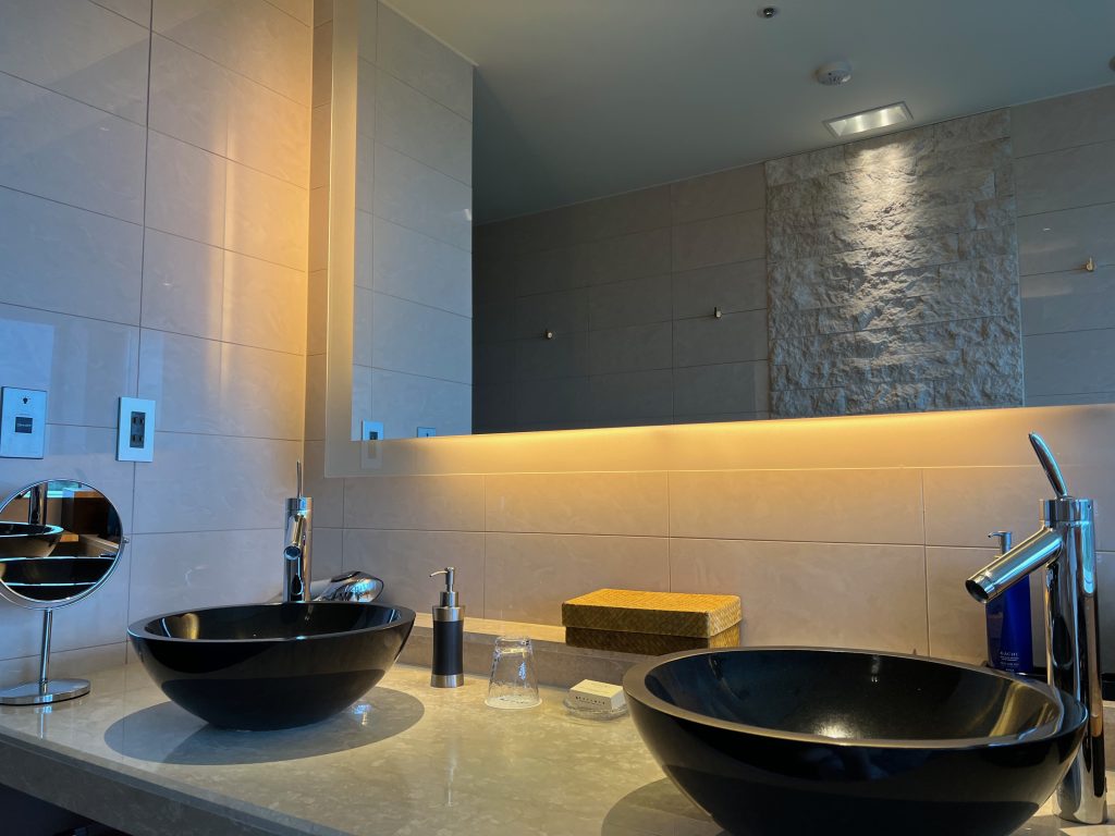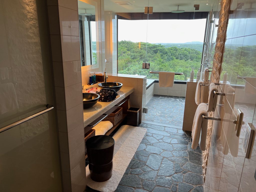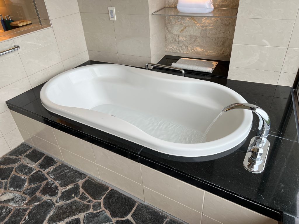 広くてとてもおしゃれなお部屋で1泊しかしないのはとても残念でした。ただのんびり過ごすのももったいないので素晴らしい景色を眺めながらお風呂に入りました。