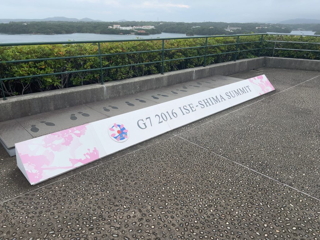 ラウンジから外に出ると伊勢島サミットで閣僚たちが写真を撮った場所で同じように記念撮影をすることができました。