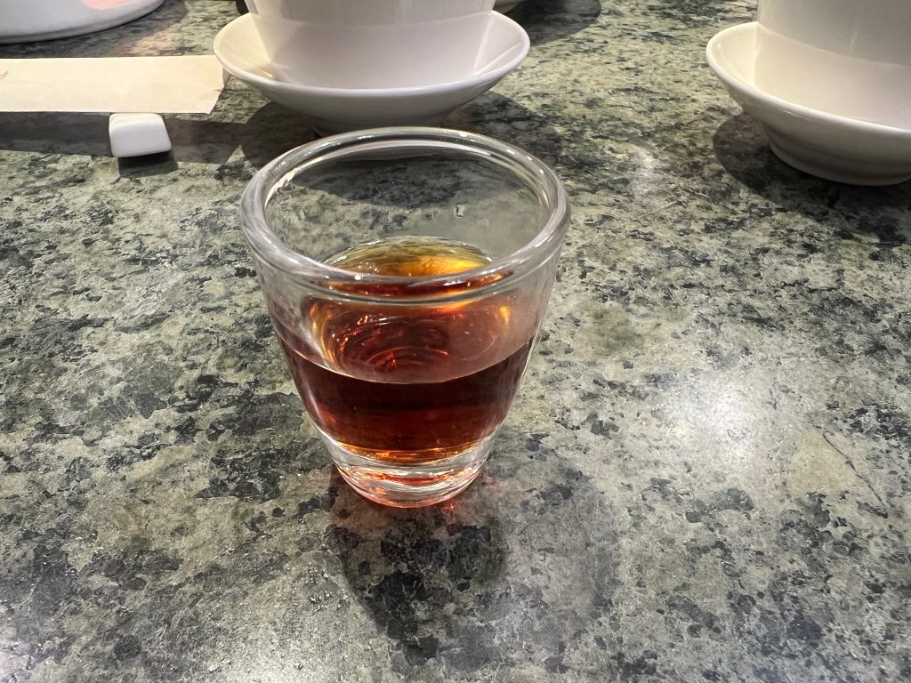 紹興酒をボトルでオーダー。台湾の人は飲めない人が多いのでお酒を頼む人は多くありません。目立ちます。
