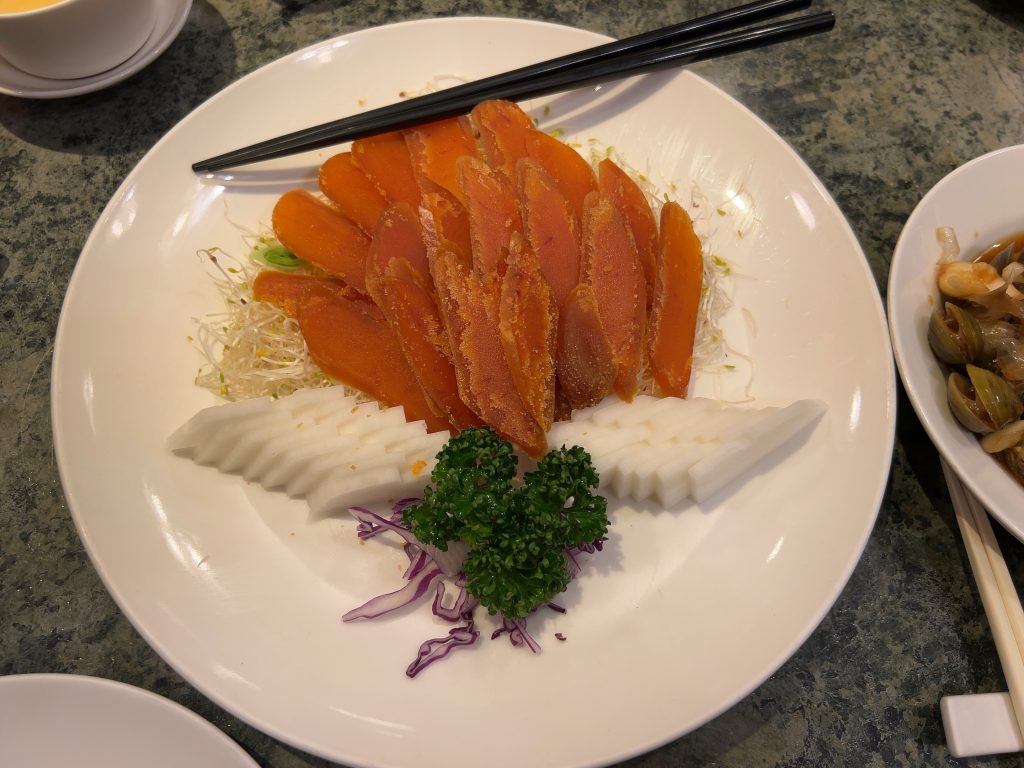 「欣葉」ではカラスミを使った台湾料理と蟹おこわを頂くことができました。