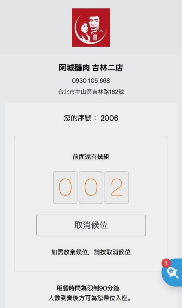 店前の順番待ち機でチケットを発行します。QRコードを読み込むとネットでも確認できるようになっていました。