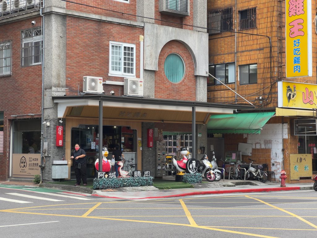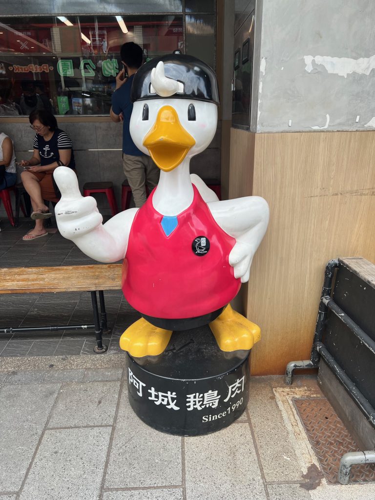 するとその途中で、連れがガチョウのキャラに気がつきました。何かと思ったら連れが以前から気になっていた飲食店「阿城鵝肉」でした。
