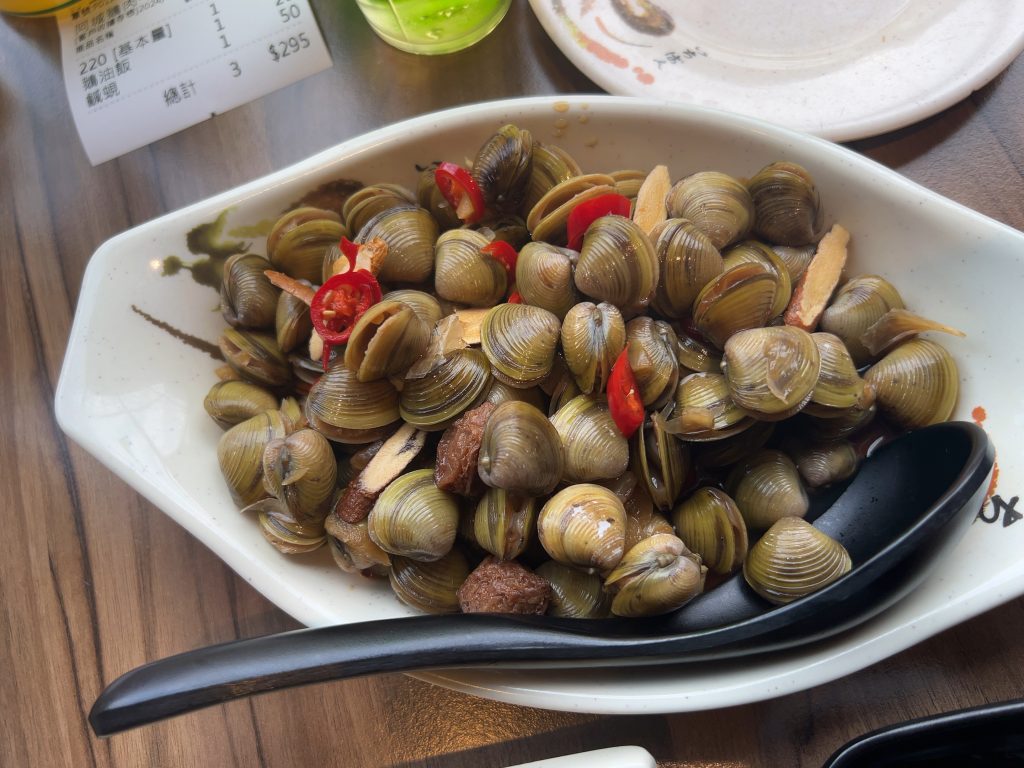 1〜2人(基本量不部位指定)、鵝油拌飯、鹹蜆、ビールを頼みました。