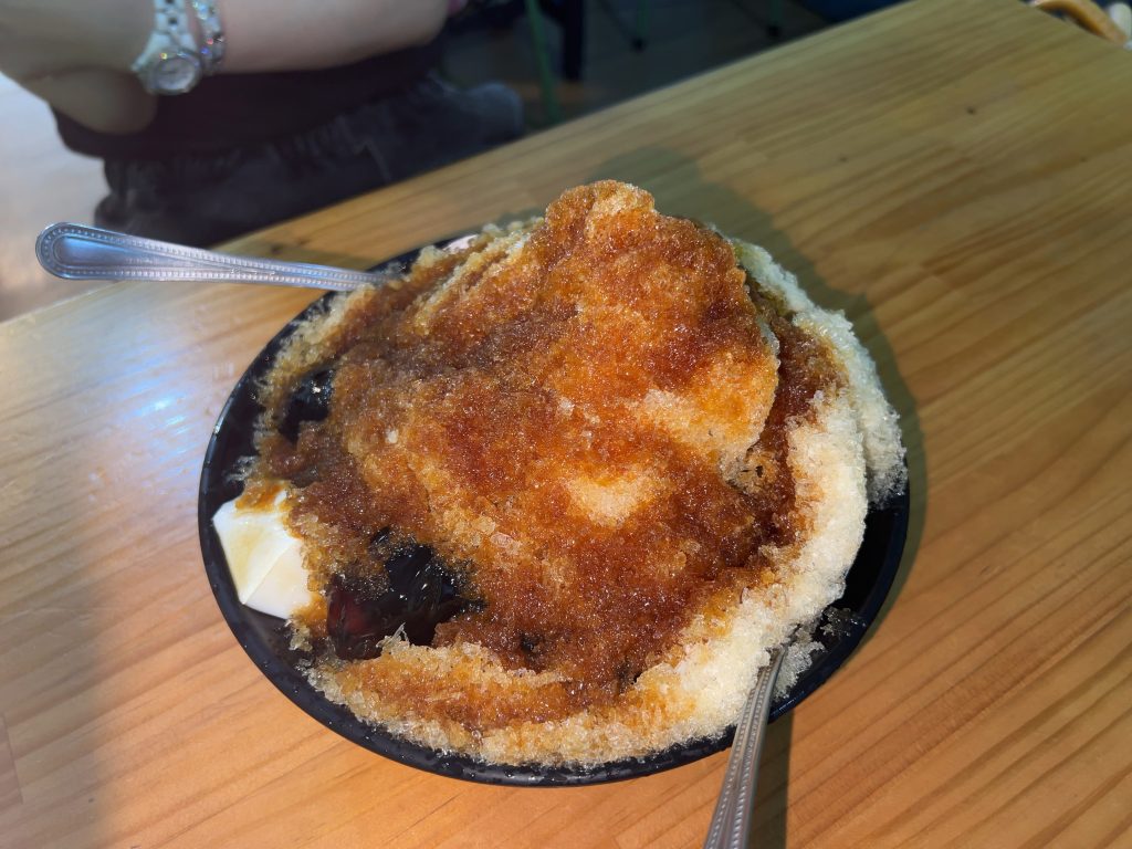 マンゴーかき氷ではなく、トッピングが4種できる黒糖かき氷を注文しました。店は混んでいなくてすぐに氷は提供されました。