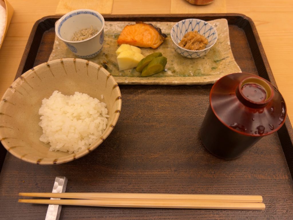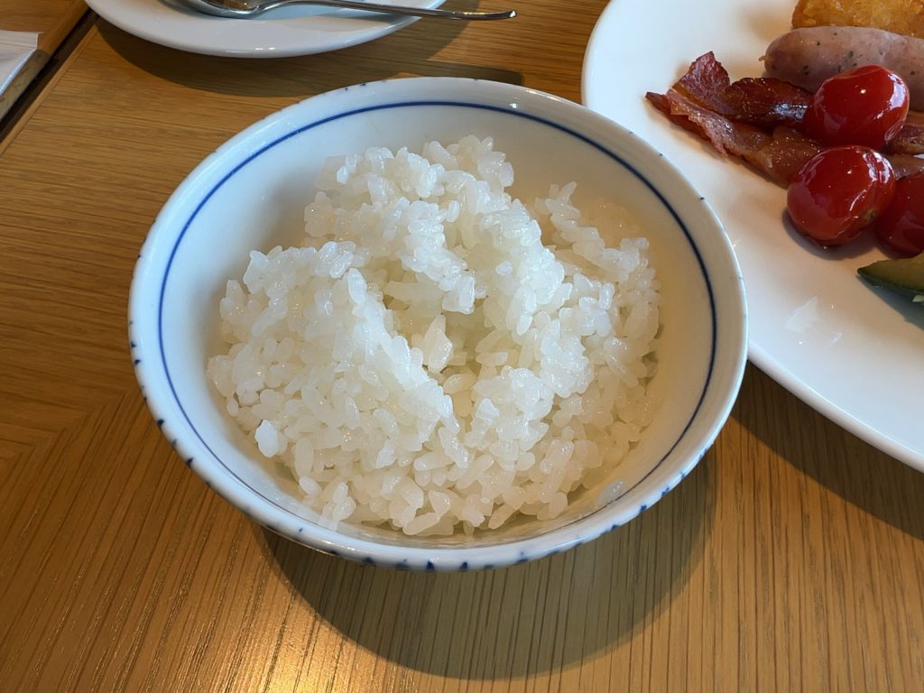 お米不足なので美味しい白米をいただく。おかずは、納豆、だし巻き卵、蒸し野菜、ベーコン、ソーセージ、ハッシュドポテトなど、少なめに。お昼を考えて。