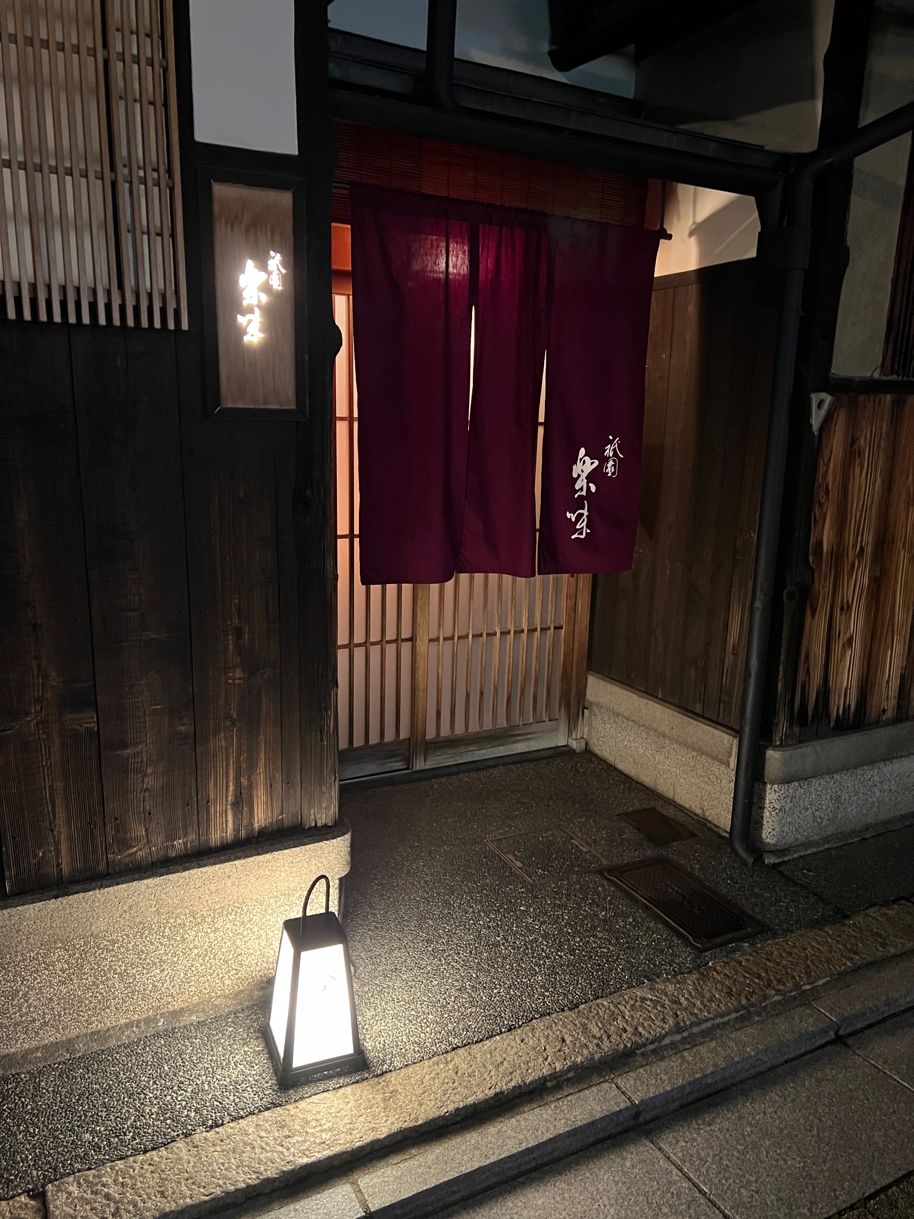 KENZOから歩いて数分、祇園南側のにある「祇園 楽味」へおじゃましました。20:30開始の予約は比較的取りやすい感じです。
