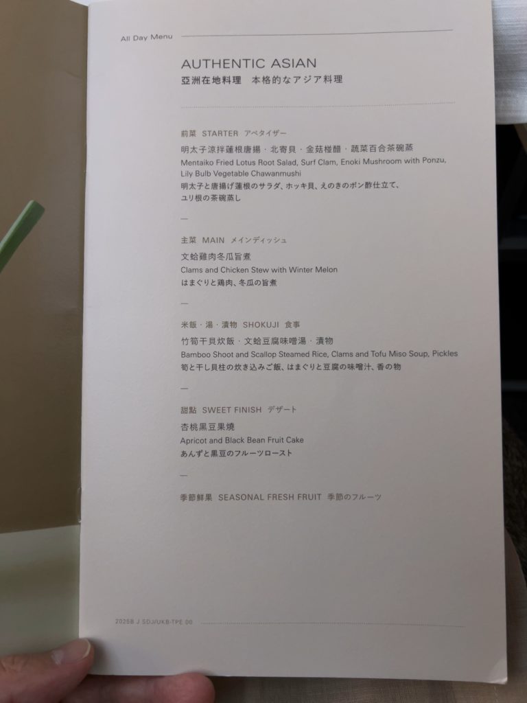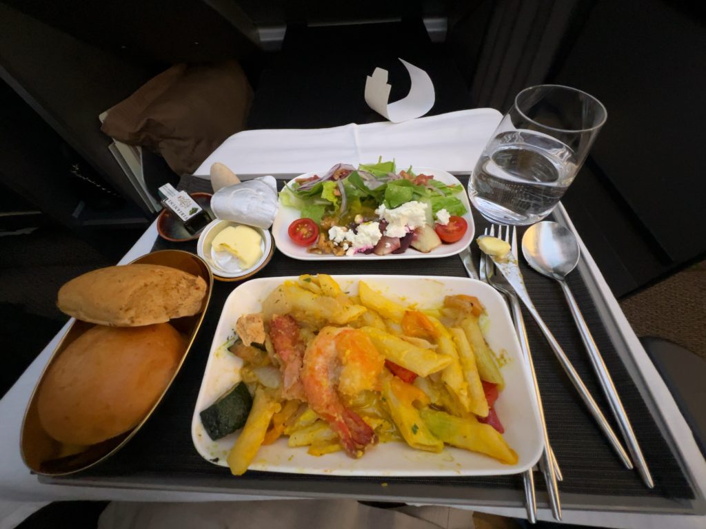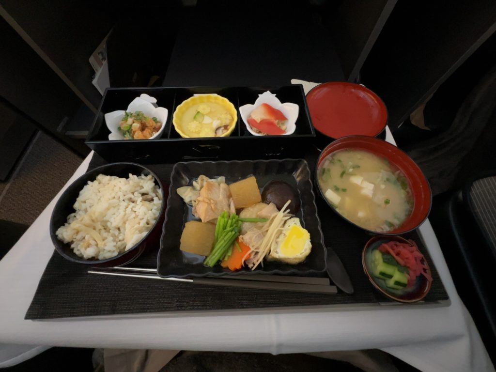 離陸後少しして、食事が提供されました。4時間の短距離路線ですからテキパキと進んでいきます。