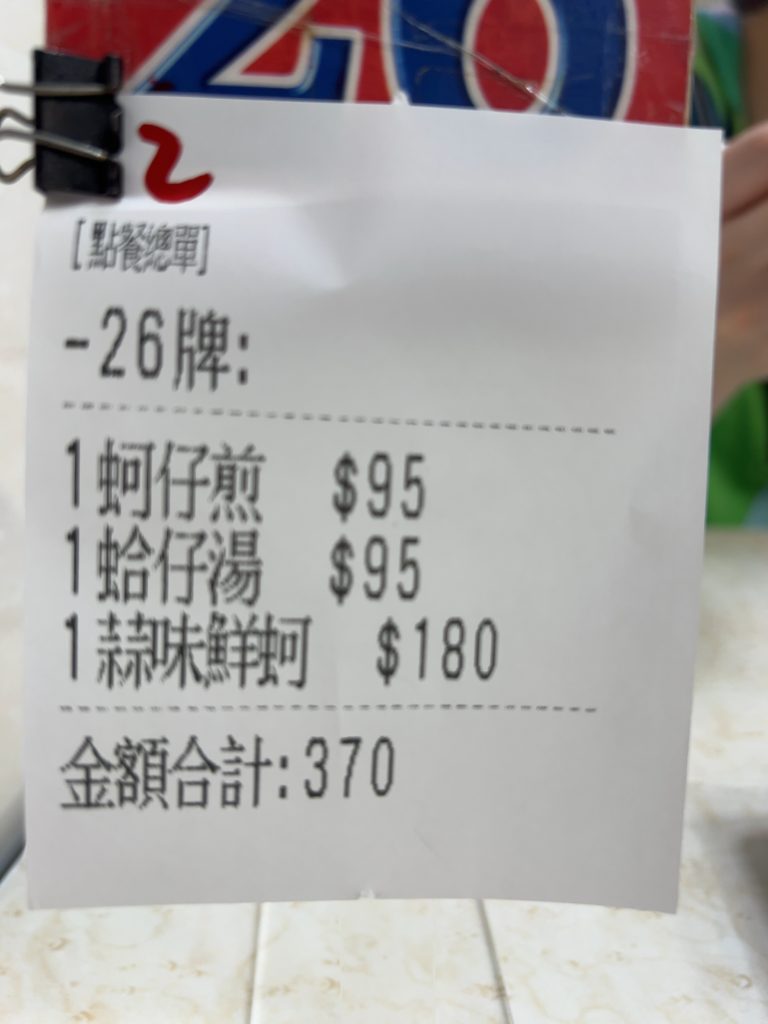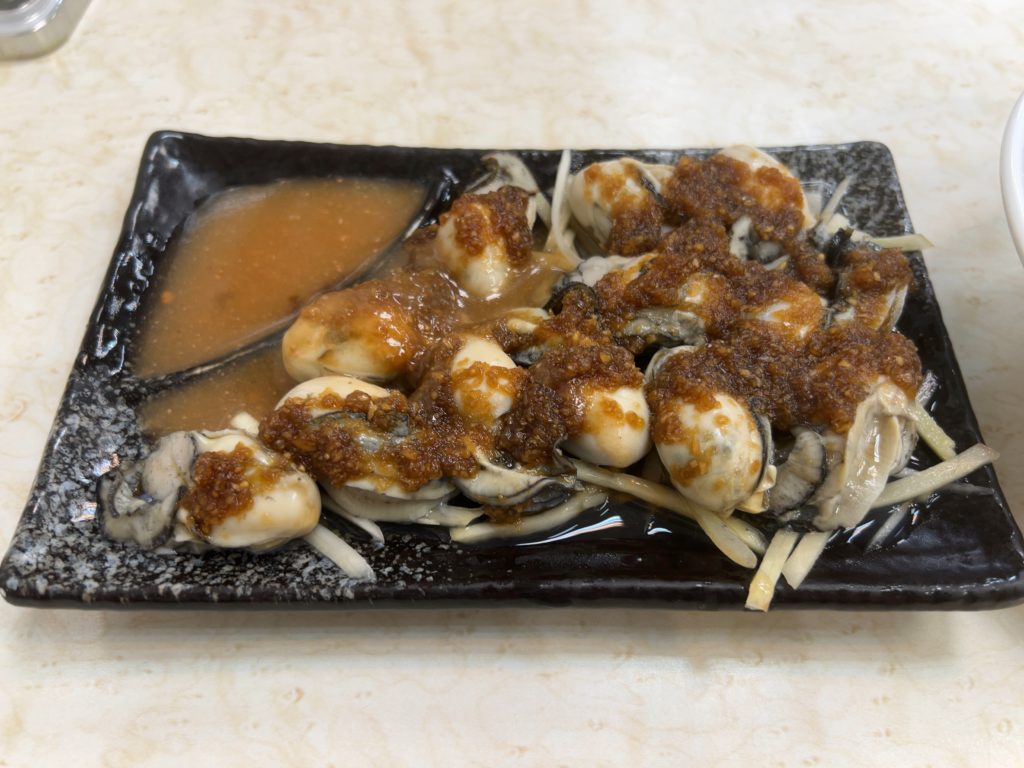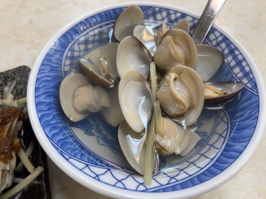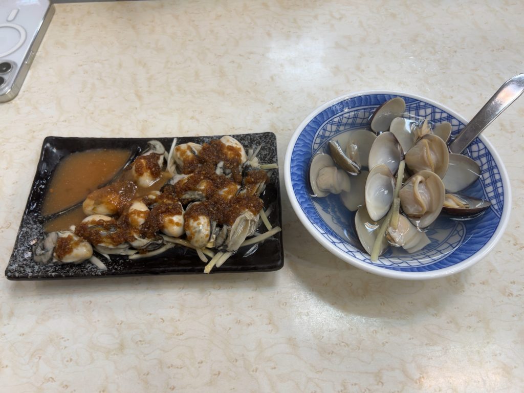 まずは円環辺蚵仔煎へ。円環辺蚵仔煎ではカキオムレツ、蛤のスープ、牡蠣のニンニク和えを食べましたが、ニンニク和えが予想外に美味しくびっくりしました。もちろん牡蠣オムレツも蛤のスープも言うまでもなく美味しかったです。