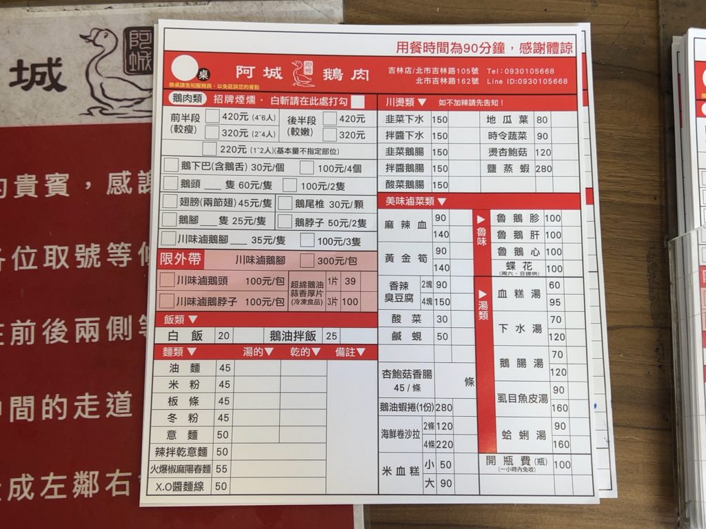 お昼は前回の訪台でも訪れた「阿城鵝肉」へ行ってみました。5月30日〜6月1日(日)は台湾では3連休。混雑も予想されましたがそこまで混雑してませんでした。到着は13時前。3組待ちで15分ほどで入店しました。