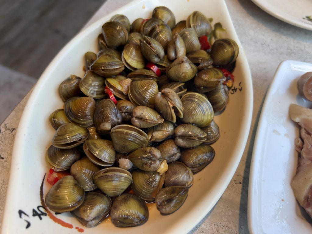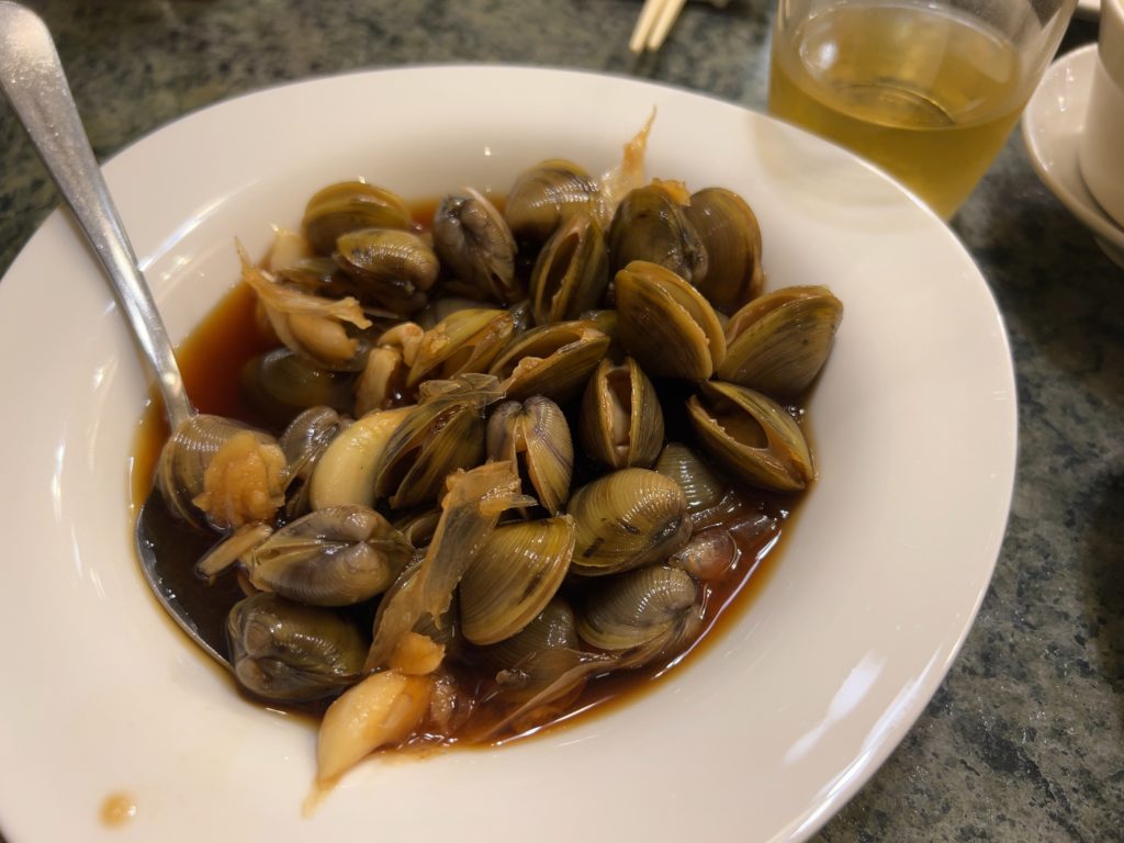 ビール2本、前半段2皿、後半段1皿、鵝油拌飯、しじみ、を頂いて退店。大変満足できました。