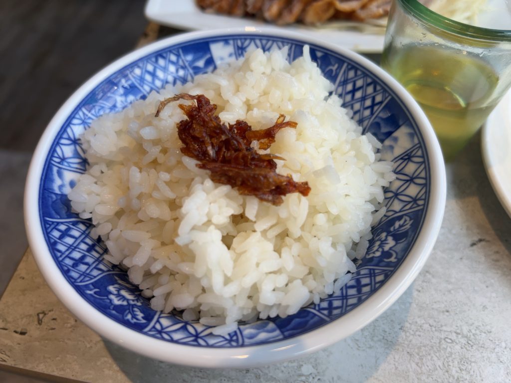1年ぶりの味に震えてしまいました。もも肉は骨があるので注意が必要です。塩味効いていてとってもうまいです。一緒に頼んだご飯、鵝油拌飯と相性バッチリです。
