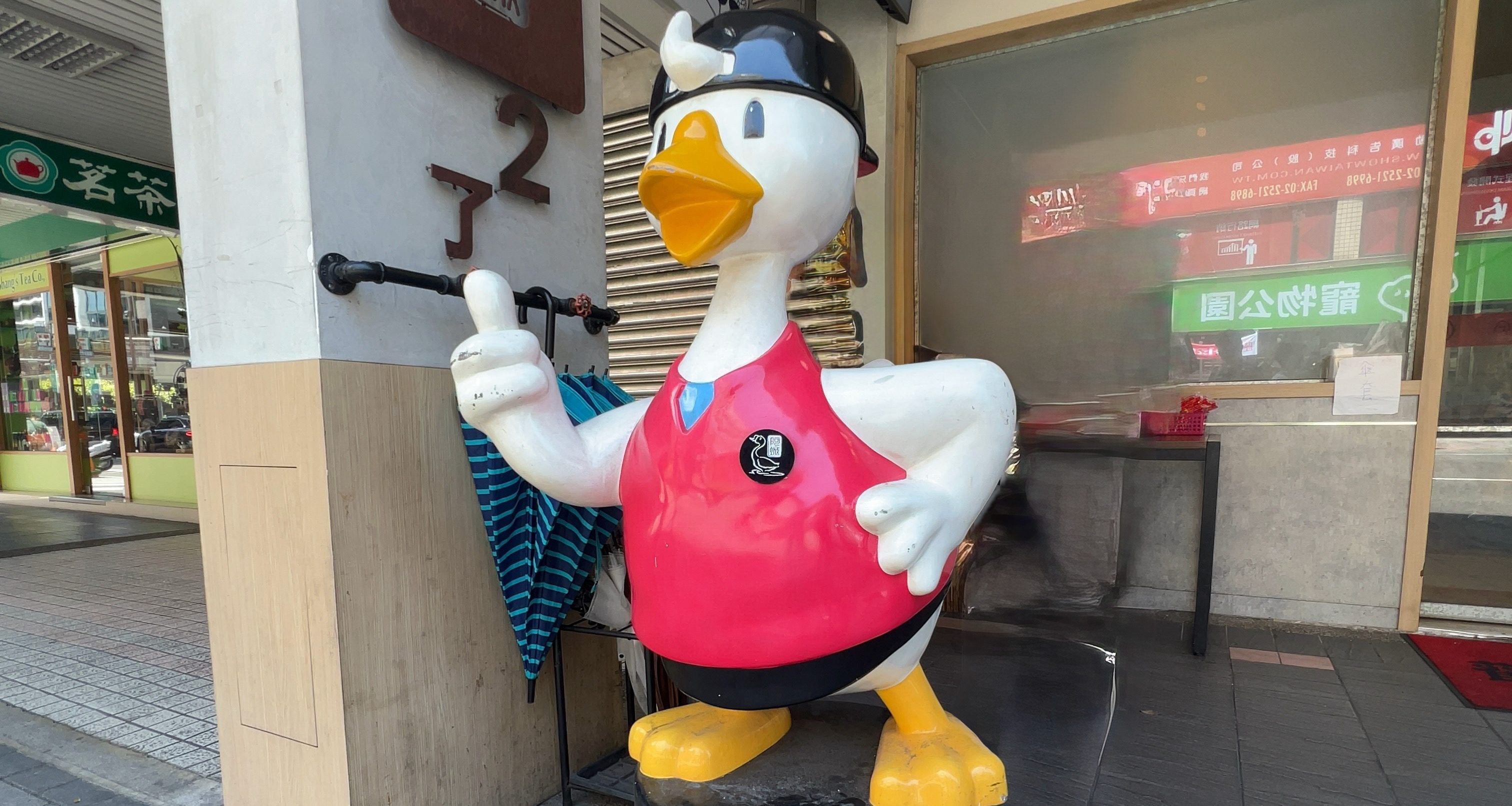店舗の前にはガチョウのキャラクターが鎮座しているので分かりやすいです。