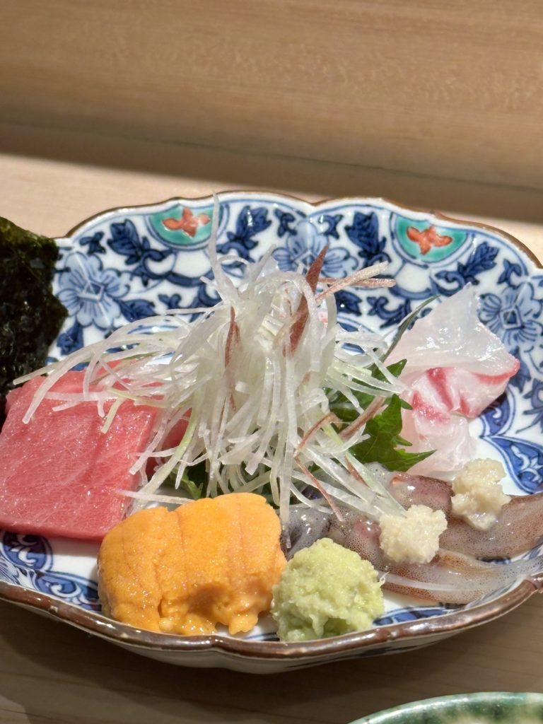 最初に頼むのは季節の魚を使ったお造りの盛り合わせ。
