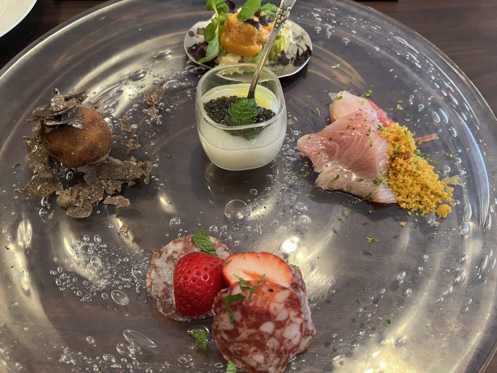 食事ですがイタリアンのコースだとどんな感じなのか想像もつかなかったのですが、頂いたお料理は大変美味しかったです。さすがミシュランの星を獲得しているので手の込んだ料理でした。その一部ですが写真をのせます。
