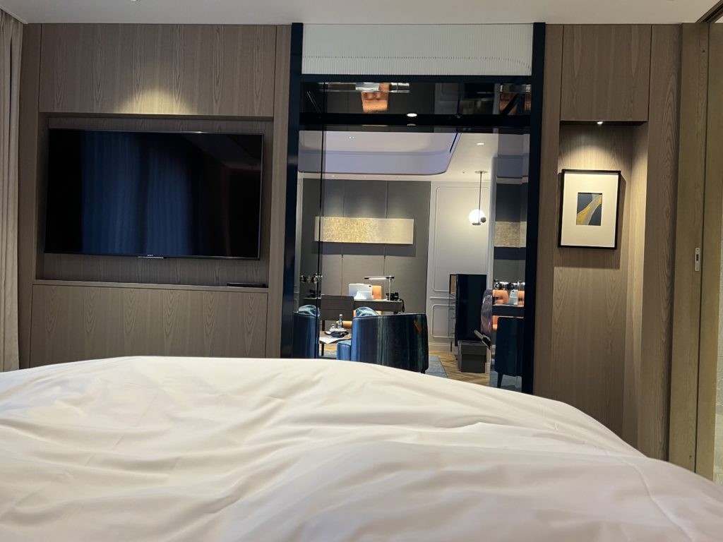 今回は2グレードアップのジュニアスイートの客室にアップして頂きました。とても広く落ち着いた雰囲気で、快適すぎて外出したくなくなるような部屋でした。(まだブログのことを常に意識できておらず綺麗なうちに写真を撮ることを忘れてしましました。)