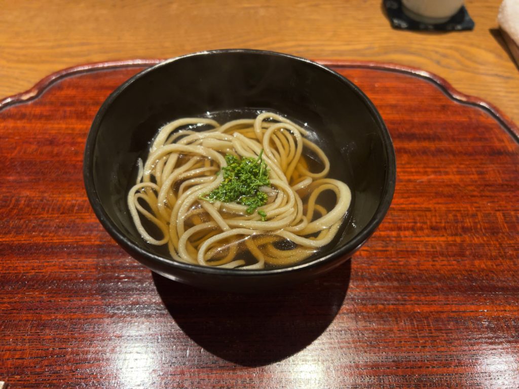 さきほどの牛の出汁がきいたそば。花山椒を添えて。
