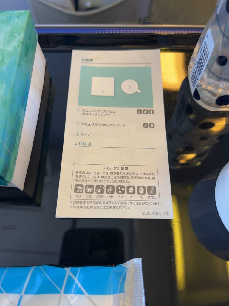 お昼に仙台を出発する便はこちらのメニューのようでした。