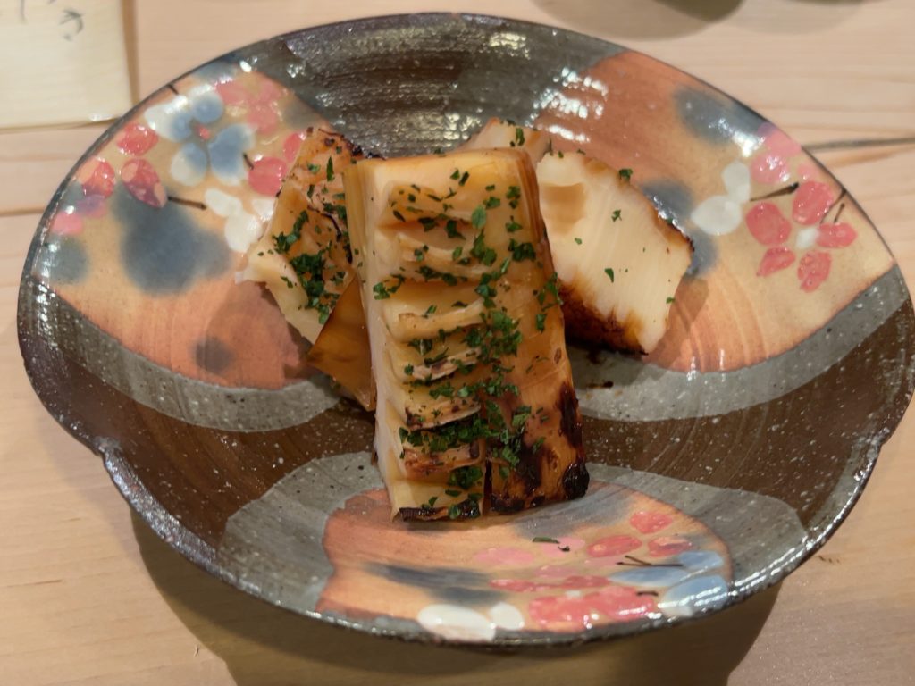 大原産の朝掘れ筍を焼きで頂きます。木の芽がよくあいます。
