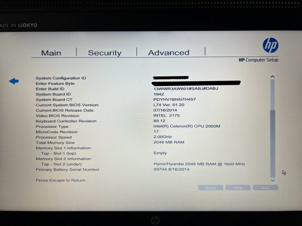 プロセッサーはIntel®︎ Celeron®︎ 2950M、メモリはまさかの2GBでした。