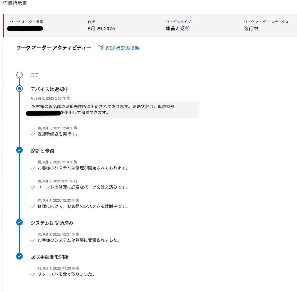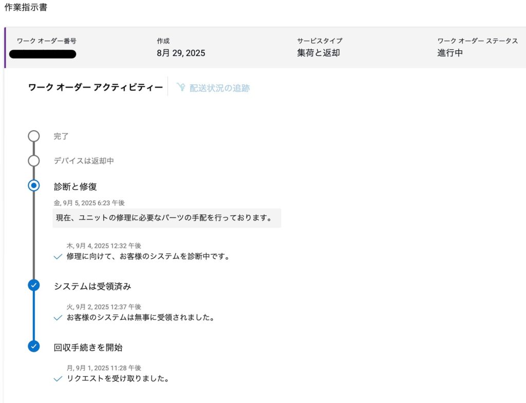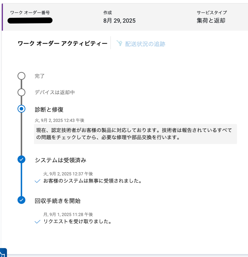 8/29 DELLのWEBで修理をオーダー。受け付けたとのメールが届く。10営業日ほどかかるとの記載がありました。