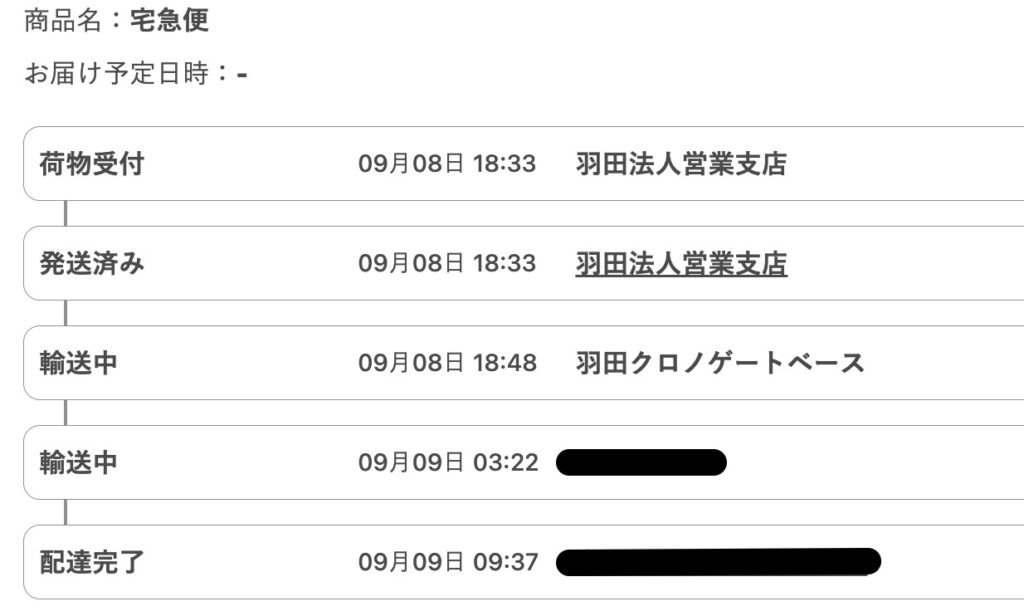 ヤマト運輸さん、迅速な配送ほんとありがとうございます。もちろん他の業者もほんとありがとうございます。皆さんがいないと我々は本当に困ります。これからもよろしくお願いします。